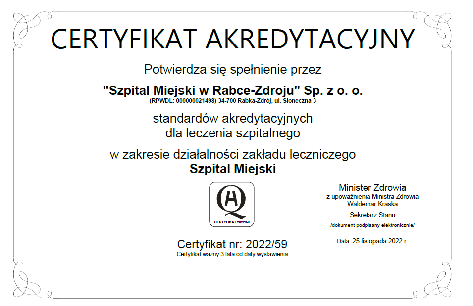„Szpital Miejski w Rabce-Zdroju” sp. z o. o.